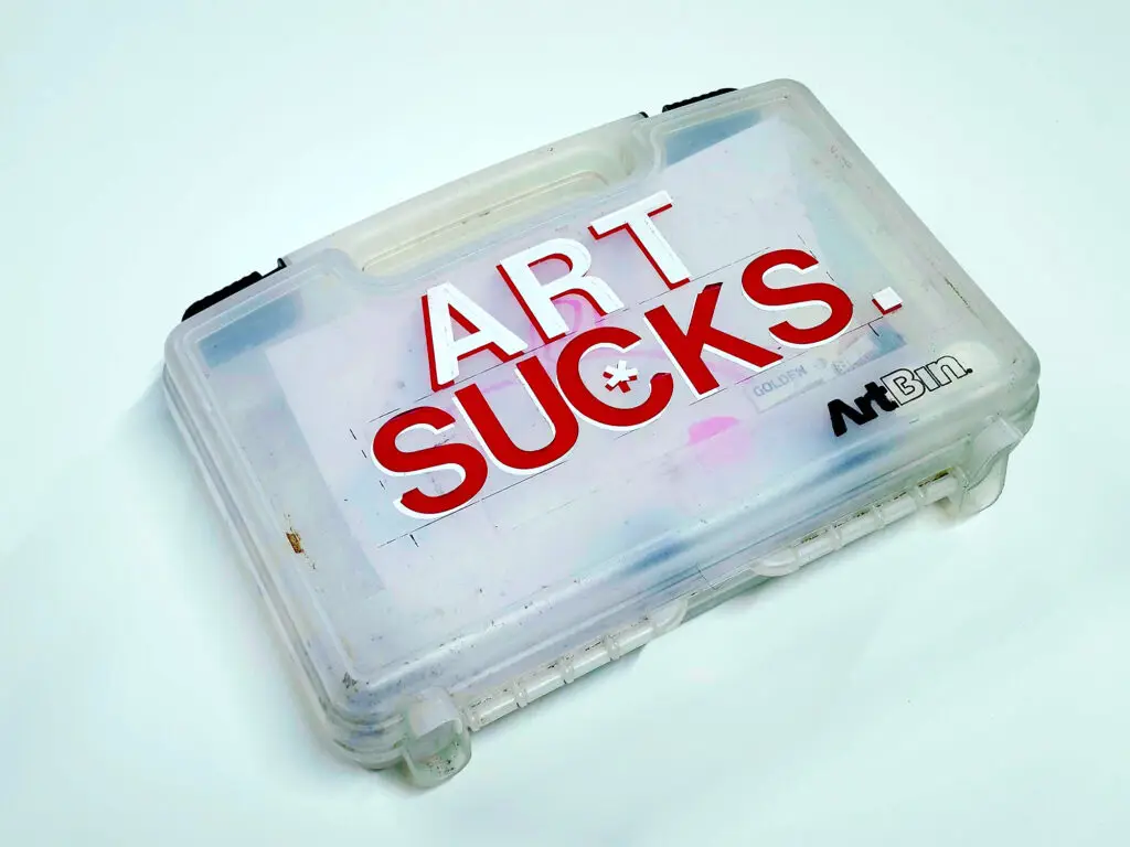 Back in the late 2000s, our founder, Adam Ris, went to art school to become an illustrator. He carried around an old art supply case with vinyl letters that read “Art Sucks.” He brought it everywhere: to painting class, across campus, and anywhere he needed his supplies.